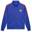 Die Jacke ist mit einem praktischen Reißverschluss ausgestattet und trägt das bekannte FC Barcelona-Vereinslogo auf der Brust, während auch die passende Hose das Logo zeigt. Der weiche, atmungsaktive Stoff bietet optimalen Komfort – ideal für sportliche Aktivitäten oder als Freizeitoutfit.