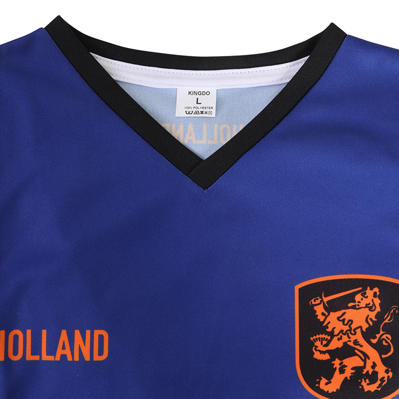 Wird die niederländische Preise gewinnen? Dieses coole blaue Niederlande-Shirt ist jedenfalls nicht das Problem. Das Fußballtrikot besteht aus 100 % Polyester und hält auch nach mehrmaligem Waschen lange. Schön für ein Fußballspiel oder zum Anfeuern in der Kneipe.