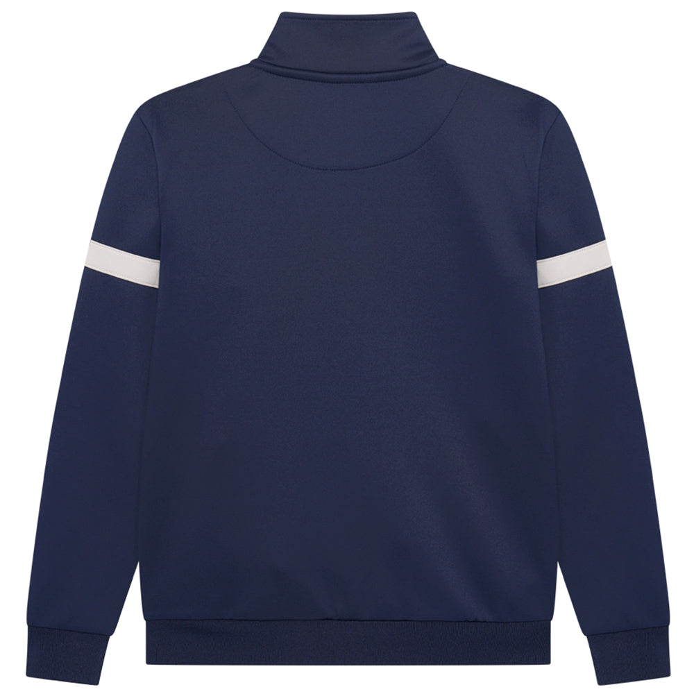 Gib deinem jungen Fußballfan mit diesem stilvollen Real Madrid Trainingsanzug in Marineblau das Aussehen eines echten Profis. Inspiriert von der Saison 2025/2026 vereint dieser Anzug Komfort, Klasse und Clubstolz in einem kompletten Set – perfekt für Sport, Schule oder Freizeit.