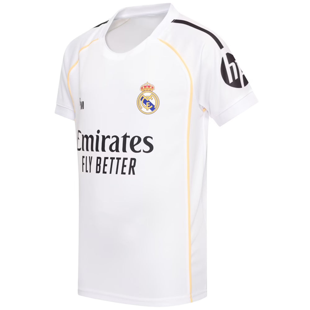 ✔ Design 2025/2026 – Komplett mit Real-Logo, Emirates Fly Better und schwarzen Schulterdetails.