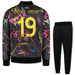 Die Jacke hat ein cooles Design voller Gamecontroller, Neonfarben und verspielter Details wie „Game Over“. Die passende schwarze Hose macht den Anzug komplett. Perfekt zum Sportmachen, Chillen oder für die Schule.